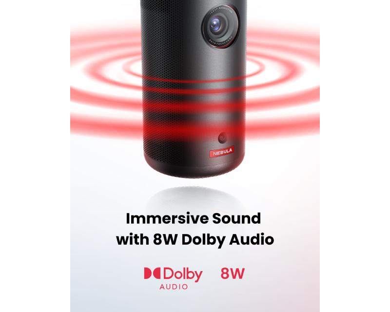 Dodatne funkcije: Google Cast, Automatic keystone correction, Screen Fit, Google Assistant, Auto-focusing, Google TV 11 sa ugrađenim aplikacijama (Netflix, YouTube, Disney+ i druge), Obstacle Avoidance, Bluetooth zvučnik, DCI-P3 colour gamut (90%), Google Play prodavnica, Nebula Manager aplikacija, Rotacija 180 stepeni, Zvučnici: 8W, Podržane tehnologije: Dolby Audio, Chromecast, Napomena: Baterija 52Wh (do 2.5h),