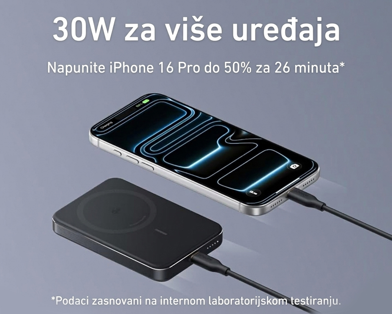 Tip: Prenosni bežični punjač, Format: Li-Po, Kapacitet: 10.000 mAh, Punjive: Da, Priključci: 1x USB tip C (PD 30W), Dodatne funkcije: LED indikator, Ugrađen snažni magnet, Bežično punjenje brzine 15W, Podrška za MagSafe, Qi 2.0 Wireless standard bežičnog punjenja, Usklađeno sa avionskim standardima, Vreme punjenja oko 2.5h, Sistemi zaštite: Active Shield 2.0,