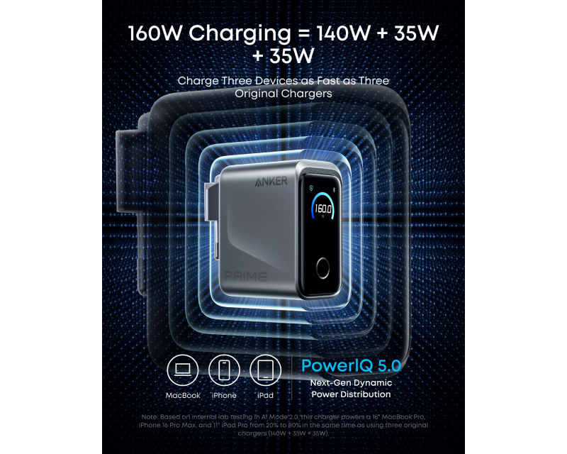 Upotreba: Laptopovi, Apple iPad, Apple iPhone, Android, Punjenje tri uređaja u isto vreme, MacBook Pro, Dodatne funkcije: Brzo punjenje, PowerIQ 5.0, Napomena: GaN Technology (Galijum nitrid),