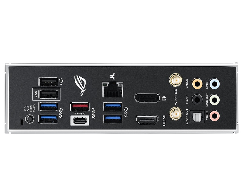 Broj DisplayPort priključaka: 1, Broj HDMI priključaka: 1, Ukupno USB priključaka: 8, Ukupno USB-C priključaka: 1, USB-A priključci: 2x USB 2.0, 1x USB 10Gbps (3.2 Gen 2), 4x USB 5Gbps (3.2 Gen 1), USB-C priključci: 1x USB 10Gbps (3.2 Gen 2), RJ-45 (LAN): 1, Audio: 5x 3.5mm, 1x S/PDIF optički, Ostali priključci: BIOS Flashback taster, Wi-Fi Module,
