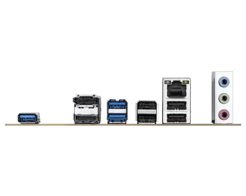 Broj DisplayPort priključaka: 1, DisplayPort priključci: 1x DisplayPort, Broj HDMI priključaka: 1, HDMI priključci: 1x HDMI, VGA D-sub: 1, Ukupno USB priključaka: 7, USB-A priključci: 3x USB 5Gbps (3.2 Gen 1), 4x USB 2.0, RJ-45 (LAN): 1, Audio: 3x 3.5mm,