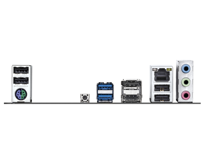 Broj DisplayPort priključaka: 1, DisplayPort priključci: 1x DisplayPort, Broj HDMI priključaka: 1, HDMI priključci: 1x HDMI, PS/2: 1 (tastatura ili miš), Ukupno USB priključaka: 6, USB-A priključci: 4x USB 2.0, 2x USB 5Gbps (3.2 Gen 1), RJ-45 (LAN): 1, Audio: 3x 3.5mm, Ostali priključci: 1x Q-Flash Plus dugme,