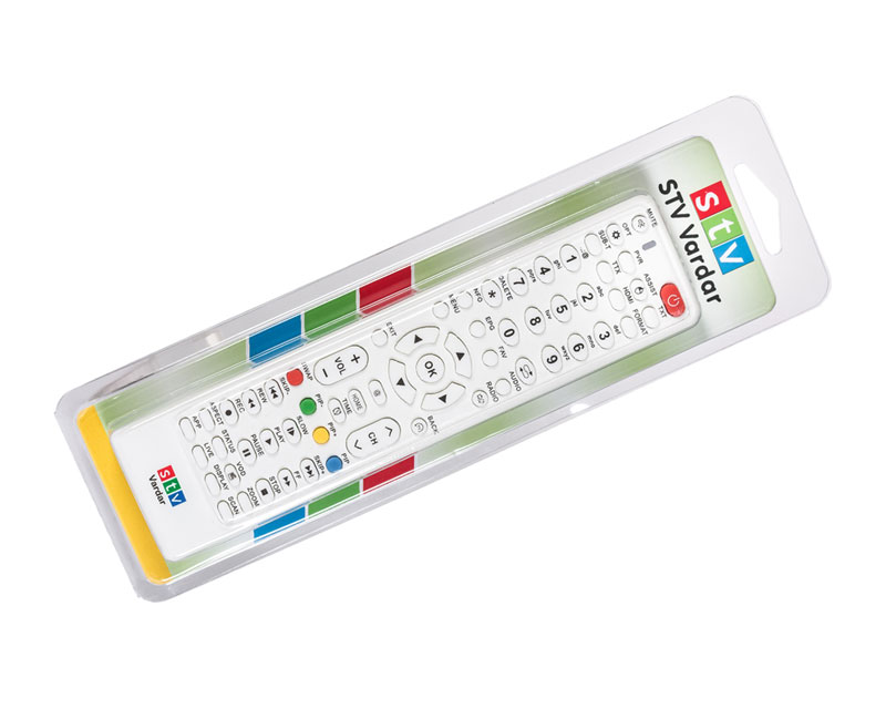 Tip: Univerzalni daljinski upravljač, Upotreba: Kablovski i satelitski stb prijemnici, Broj tastera: 22, Tasteri: MUTE, MENU, EXIT, HOME, OK, BACK, INFO, EPG, CRVENI, ZELENI, ŽUTI, PLAVI, Dodatne funkcije: Širok ugao signala omogućava upravljanje i bez direktnog usmeravanja ka televizoru, Brz odziv tastera, Baterija: 2x AAA,