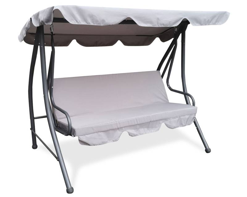 Tip: Baštenska ljuljaška, Dimenzije: 200cm x 164cm x 120cm, Materijal: Poliester, Metalni okvir, Boja: Siva,