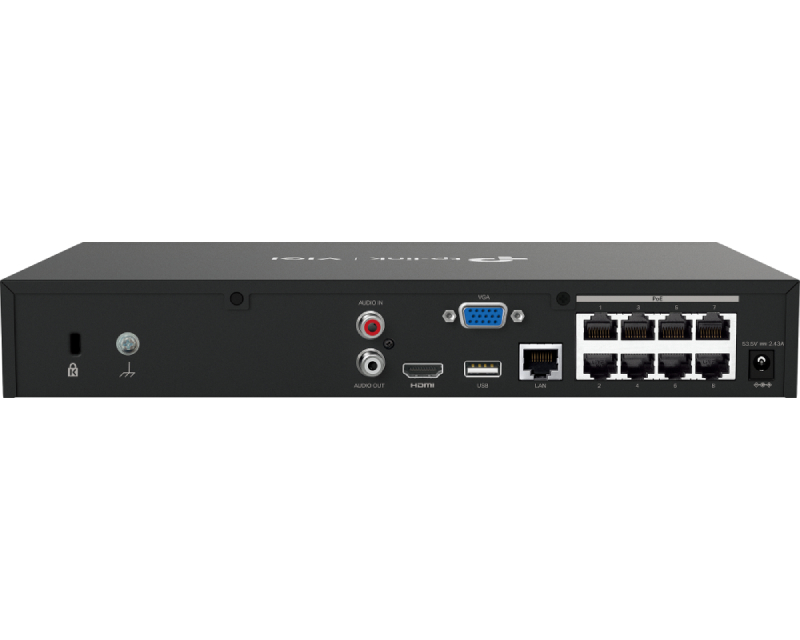 LAN: 1 x RJ-45, PoE: 8, USB 2.0: 2, Audio ulaz: 1 x RCA, Audio izlaz: 1 x RCA, VGA: 1, HDMI: 1,